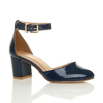 Ajvani womens low mid block heel ankle strap mary jane court shoes sandals
