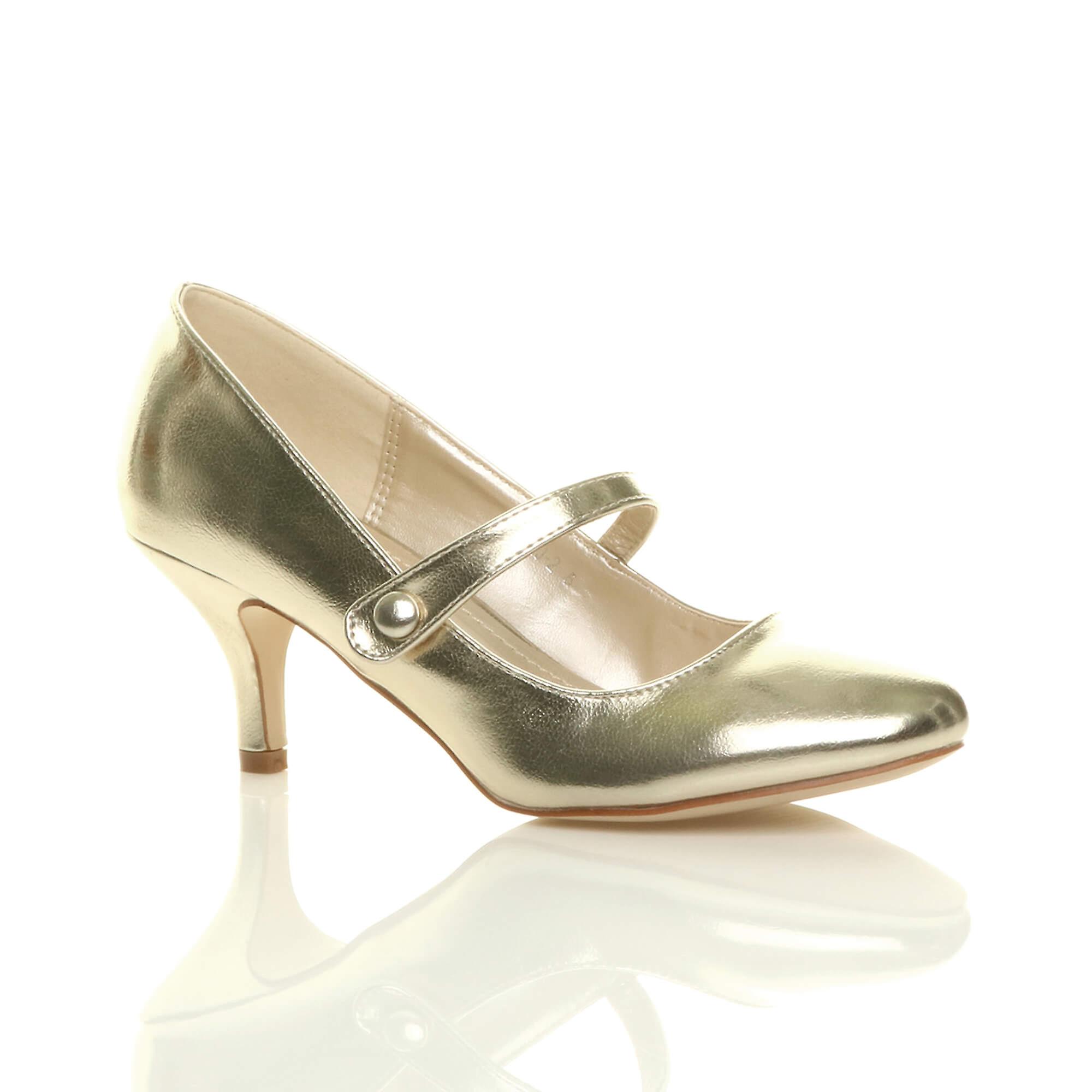 Ajvani womens low mid heel mary jane strap work party court shoes pumps