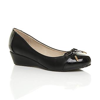 Ajvani womens low mid heel wedge bow smart work dolly ballerina court shoes