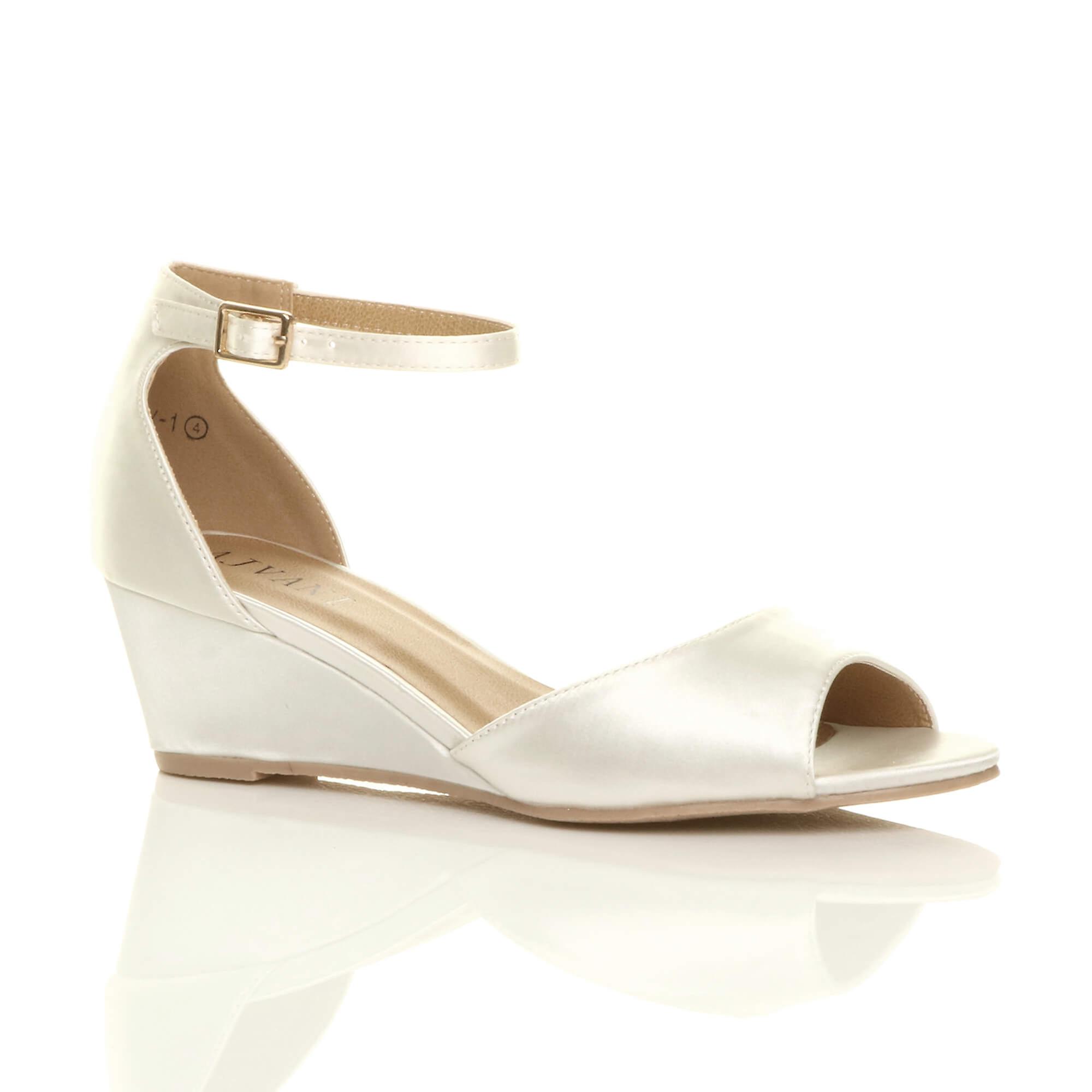 Ajvani womens low mid wedge heel ankle strap smart casual wedding bridal bridesmaid evening sandals