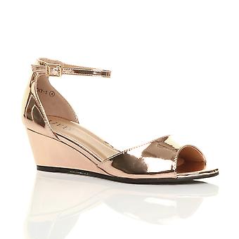 Ajvani womens low mid wedge heel peep toe ankle strap smart casual evening sandals