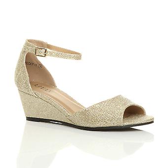 Ajvani womens low mid wedge heel peep toe ankle strap smart casual evening sandals