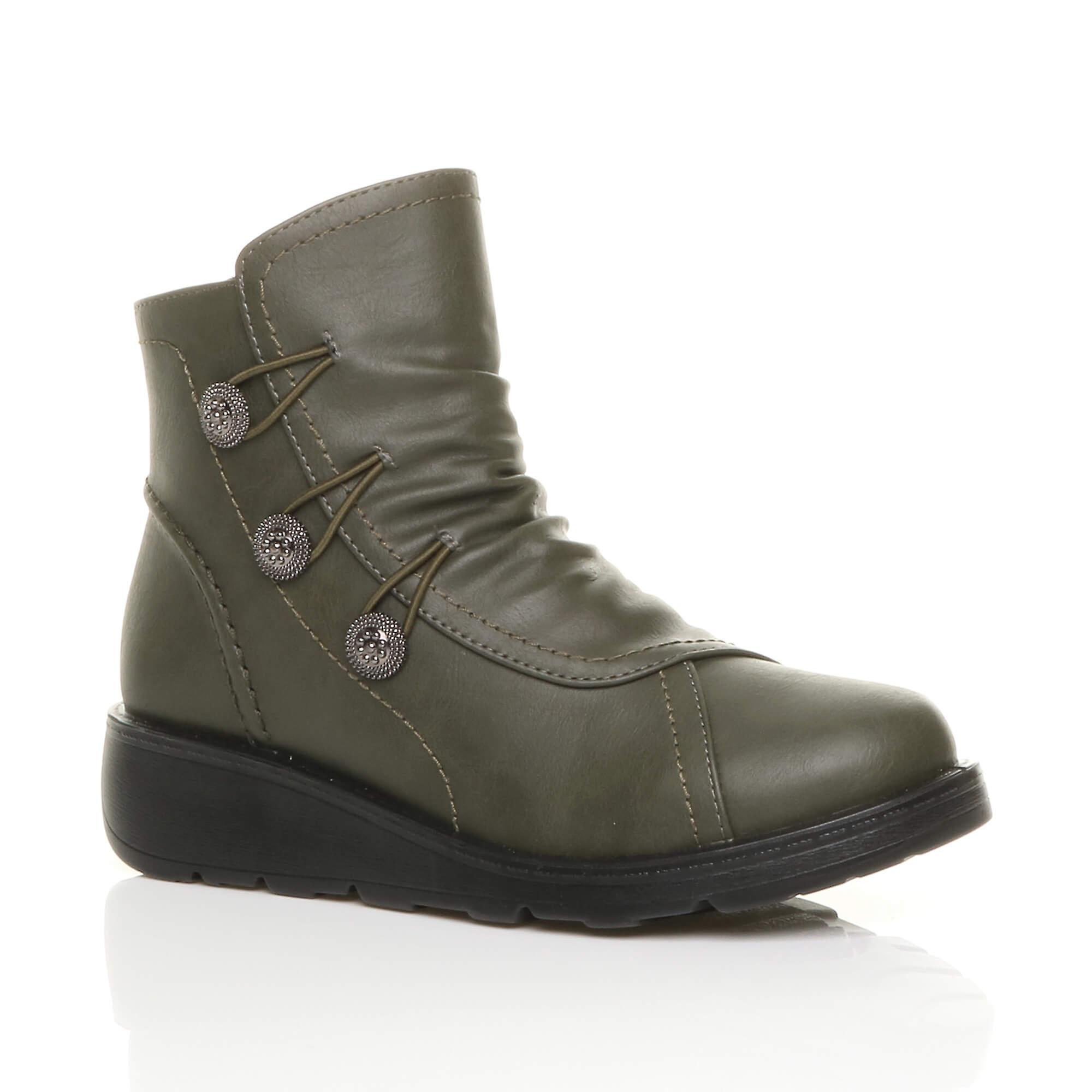 Ajvani womens low wedge heel zip ruched button comfort chelsea boots size