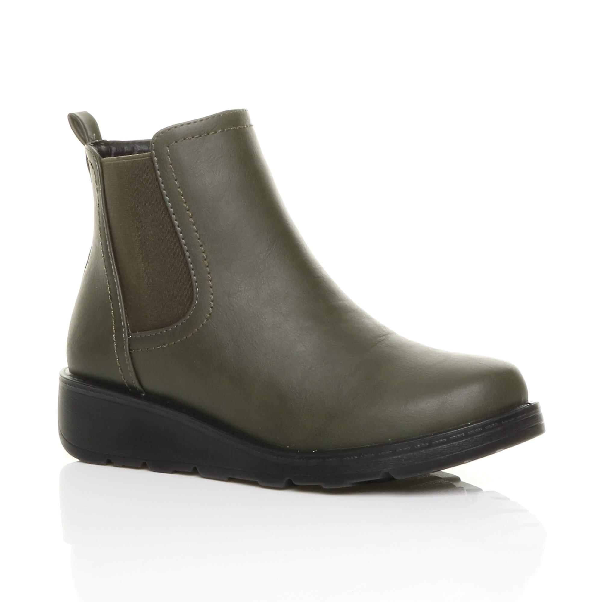Ajvani womens low wedge heel zip stretch comfort chelsea boots size