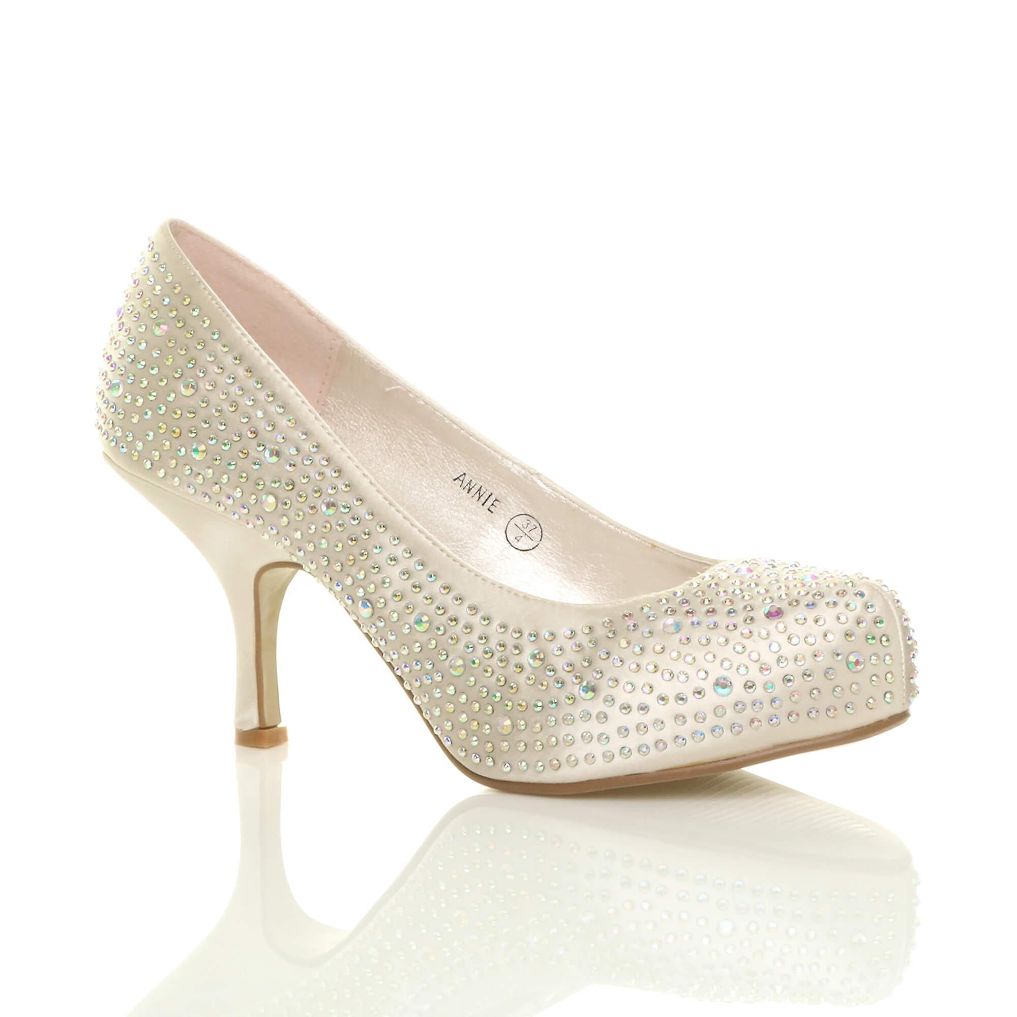Ajvani womens mid heel wedding prom bridal diamante pumps court shoes