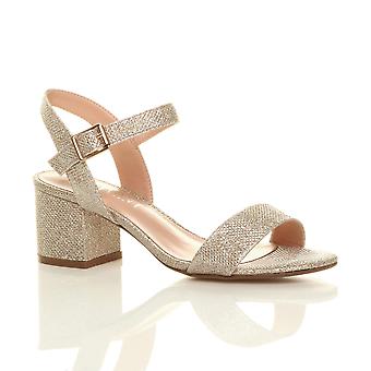 Ajvani womens mid low block heel peep toe ankle strap strappy party sandals