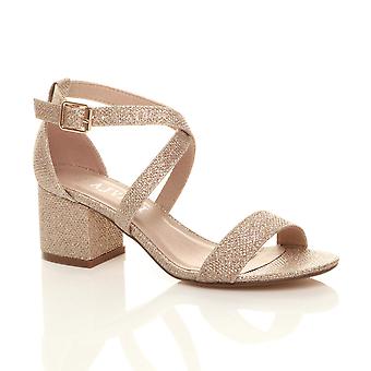 Ajvani womens mid low block heel peep toe ankle strap strappy party sandals