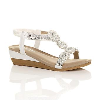 Ajvani Womens mid wedge heel diamante t-bar beads elastic slingback sandals