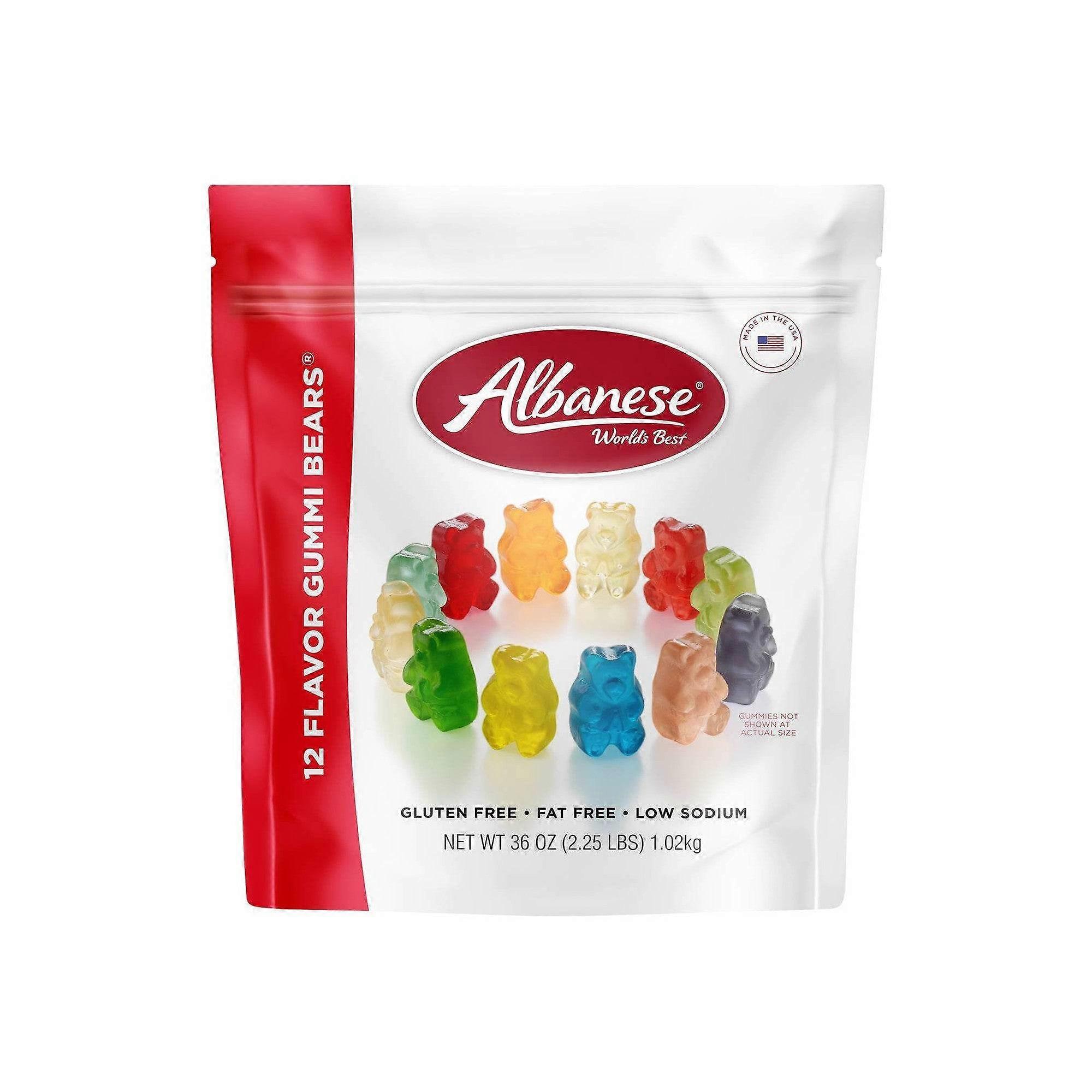 This product has a risk that it could melt during shipping by ground services due to the warm weather, especially during the summer months from May through August. We would suggest you to choose any expedited or express carrier service available during those summer months, however, this still does not guarantee that it will not melt. Albanese Confectionery is the leading manufacturer of the World’s Best Gummies located in the heart of the Midwest   For over 30 years, we've been making food with a simple recipe for success - putting flavor and texture first, always finding a better way, and never taking ourselves too seriously. Using only high quality ingredients found in the USA, the Gummi with the A on the tummy offers a softer chew with bursting flavor. You'll wonder how we fit all that flavor into one bear With our 12 Flavor Gummi Bears, you can have all your favorite flavors in one place – Cherry, Pink Grapefruit, Watermelon, Strawberry, Orange, Blue Raspberry, Lime, Grape, Green Apple, Mango, Pineapple, & Lemon This 36 ounce family share size is perfect to share with the whole family, or to stock up for yourself Our resealable package allows you to save some for later, while keeping your favorite gummies fresh and soft. So, open a bag, and share in our passion. UPC: 634418523600 Weight: 2.75 lbs
