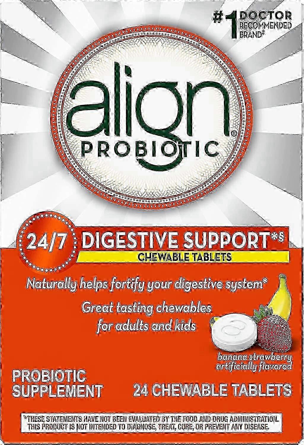 Align Probiotic, Chewable Tablets, Banana Strawberry Smoothie, 24 Ea