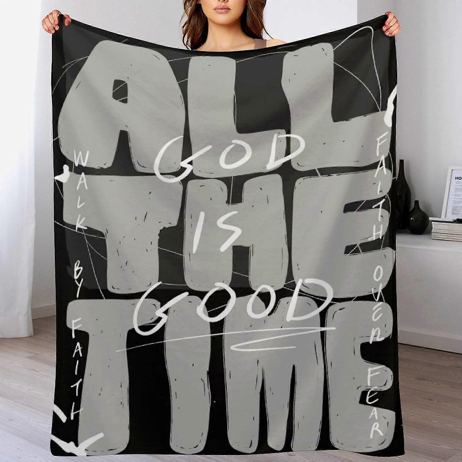 "All The Time God Is Good" Bold Text Print Flannel Blanket - Soft Warm Throw for Living Room | Faith-Based Decor for Christian Homes