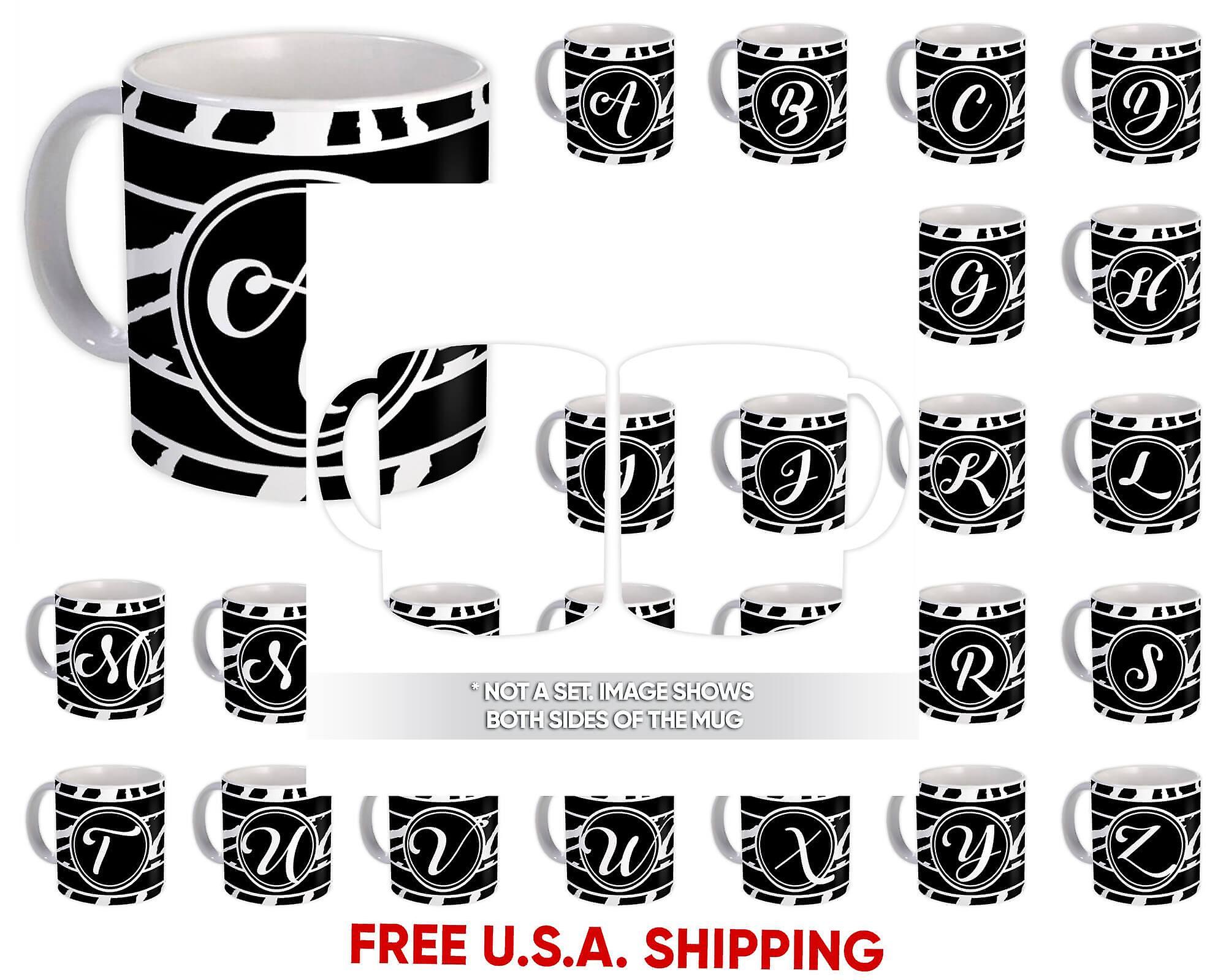 Alphabet Mugs A-Z Letters Initials Monogram Name ABC Cups Zebra Animal Print Gift