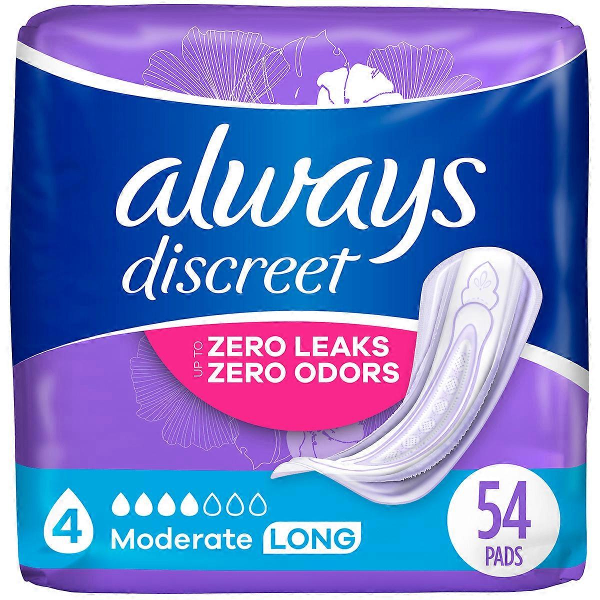 Always Discreet Incontinence & Postpartum Incontinence Pads For Women - Moderate Absorbency - Size 4, 54ct