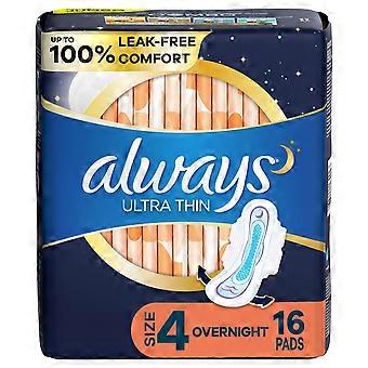 Always Ultra Thin Pads Overnight With Wings, Size 4, 16 Ea
