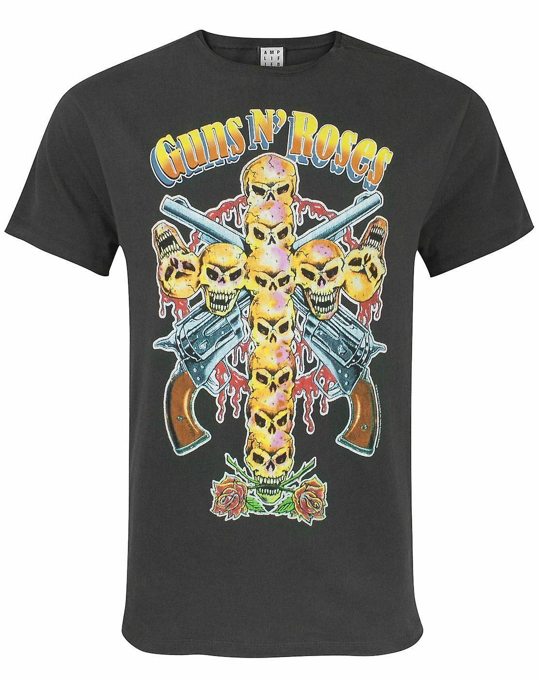 Amplified Clothing Mens Short Sleeved T-Shirt Grey Guns N Roses - Neon Skull Print