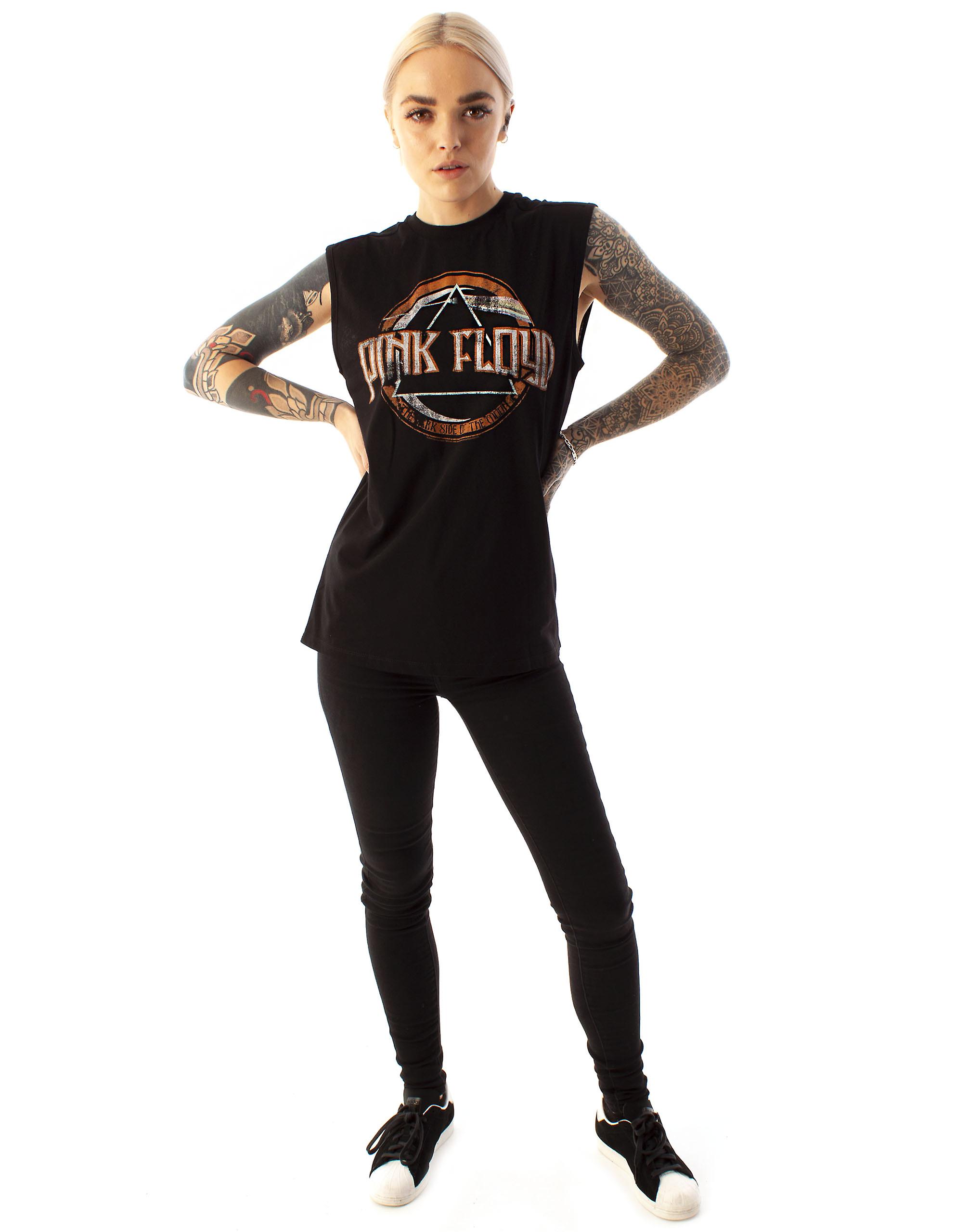 Amplified Clothing Womens Sleeveless T-Shirt Black Pink Floyd On The Run Album Artwork