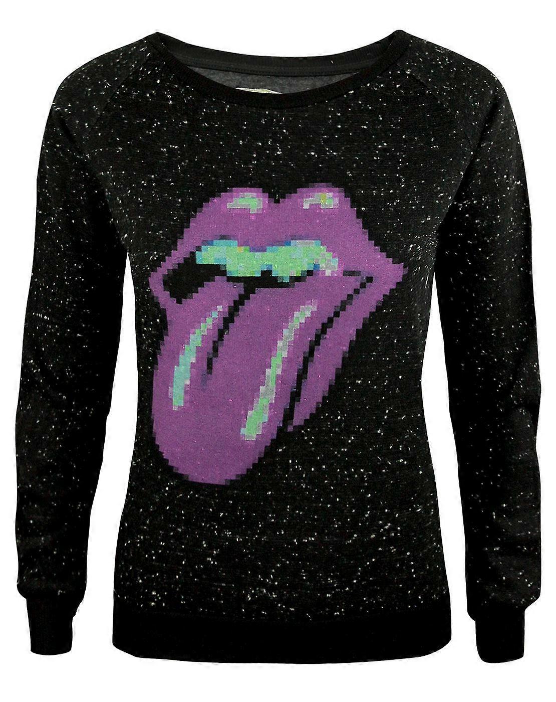 Amplified Clothing Womens Sweatshirt Black Rolling Stones Pixel Lick Logo