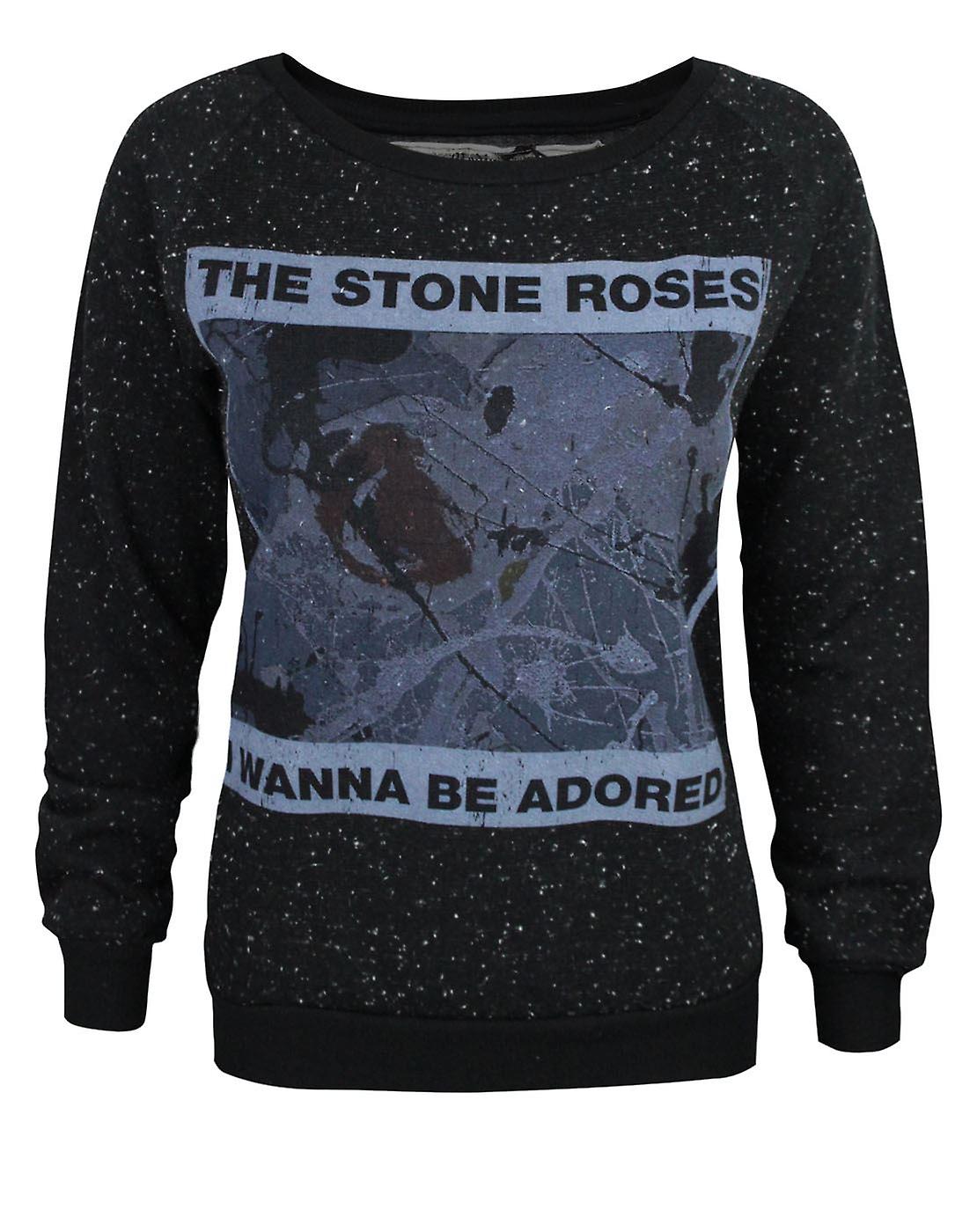 Amplified Clothing Womens Sweatshirt Black Stone Roses I Wanna Be Adored Print
