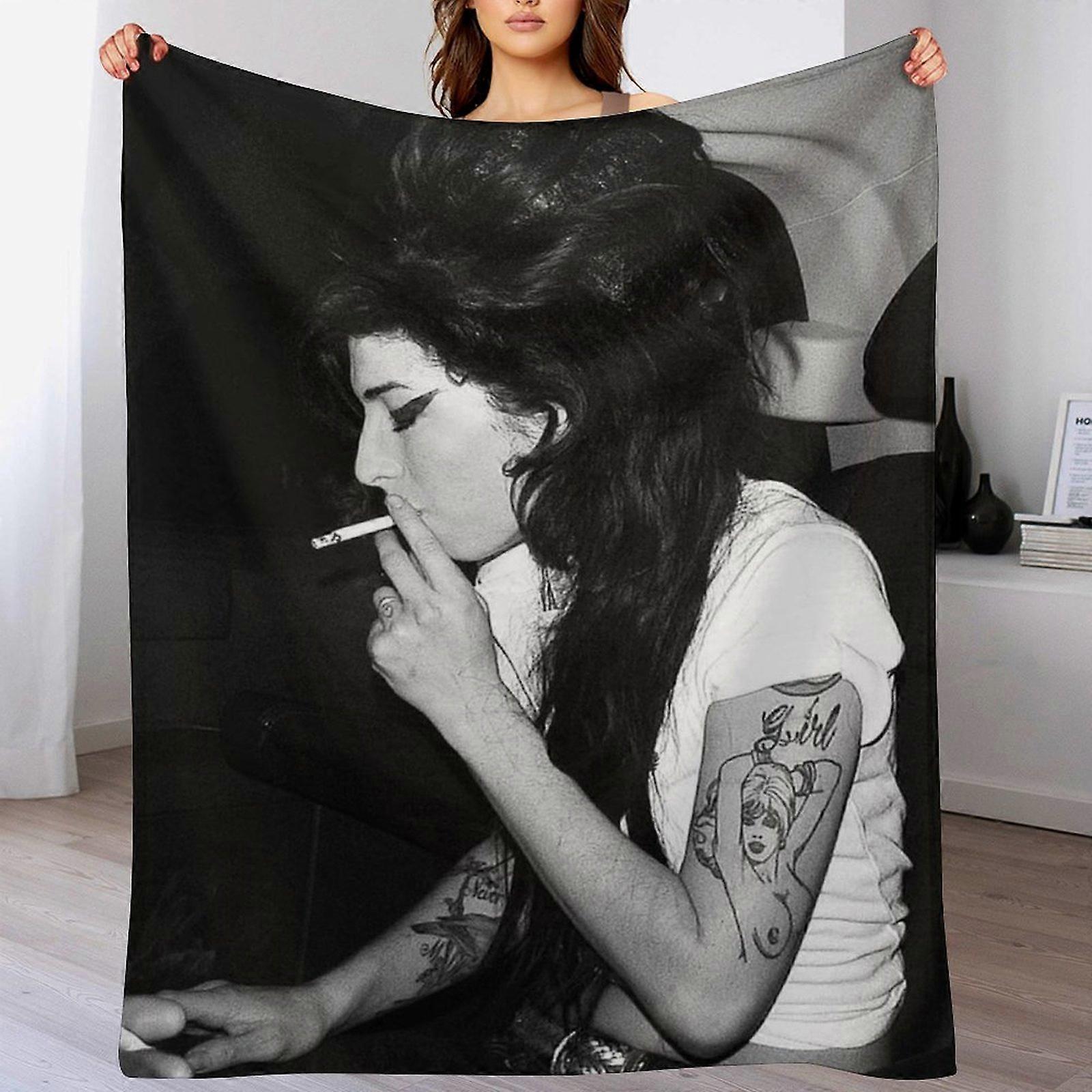 Amy Winehouse Black & White Portrait Print Flannel Blanket - Soft Warm Throw | Retro Music Gift for Soul Fans