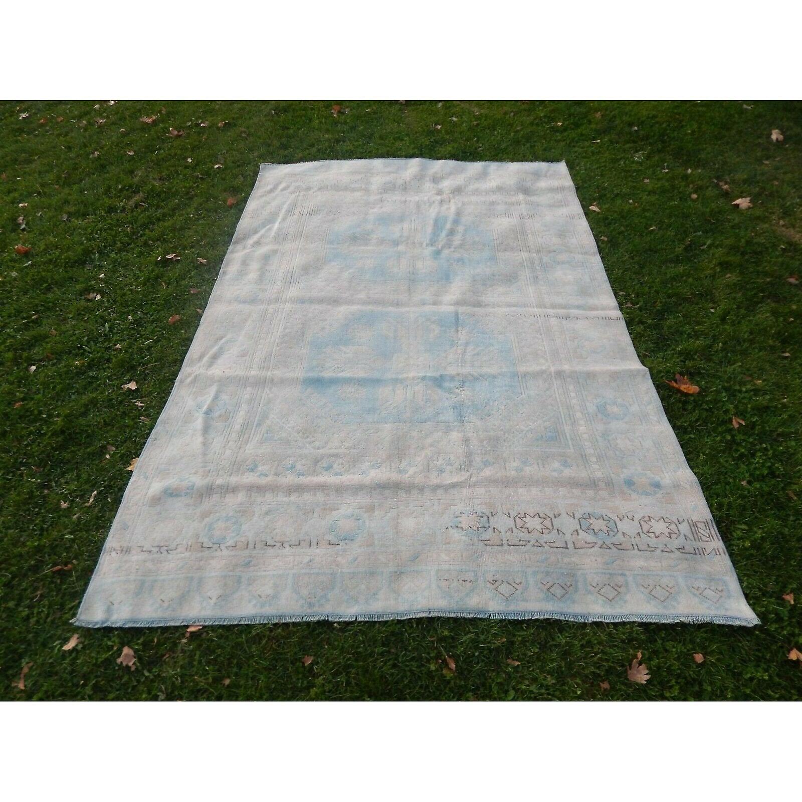 Anatolian Geometric Distressed Kars Wool Oushak Rug