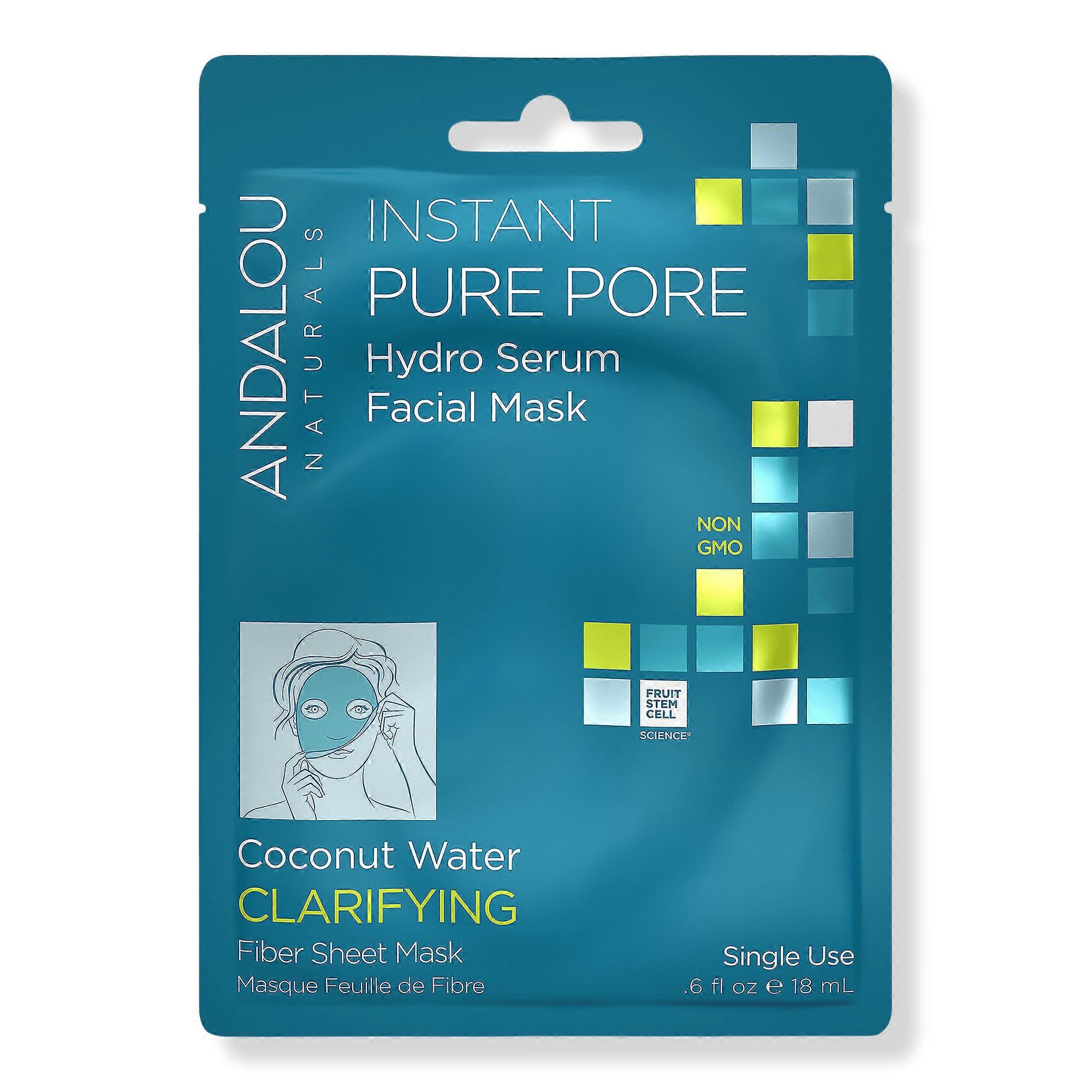 Andalou Naturals Instant Pure Pore Facial Sheet Mask enriches skin with fruit stem cell complex, willow bark, and coconut water. This mask instantly hydrates and replenishes, soothing and purifying to help address skin concerns, purify pores, and calm skin for a clear complexion. Benefits Made with plant-based ingredients Formulated without certain common additives Key Ingredients Willow bark known for astringent properties that help neutralize skin impurities Coconut water helps hydrate and nourish skin with essential amino acids, proteins, vitamins, and minerals to support healthy cells Argan stem cells deeply moisturizing, rich in fatty acids Ingredients Aloe Barbadensis Leaf Juice*, Purified Water (Aqua), Vegetable Glycerin, Coconut Water*, Fruit Stem Cells (Malus Domestica, Solar Vitis) and BioActive 8 Berry Complex*, Willow Bark Extract*, Panthenol, Hydroxyethylcellulose, Allantoin, Sodium Hyaluronate, Tocopherol, Phenethyl Alcohol, Ethylhexylglycerin, Citrus Tangerina (Tangerine) Peel Oil, Citrus Aurantium Dulcis (Orange) Peel Oil Suggested Use> Open packet and gently unfold sheet mask Place soft, fiber side on clean, dry face, adjust as needed Remove sheet backing and relax for 10 to 20 minutes Peel fiber mask from face and discard No need to rinse Gently massage remaining hydro serum over face and neck