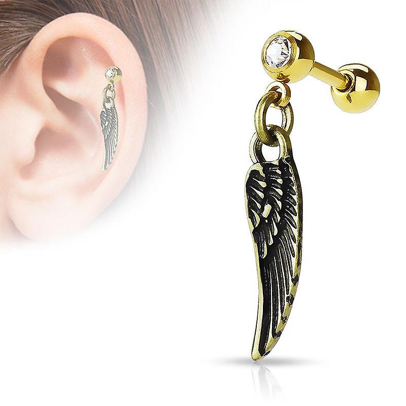 Angel wing dangling 16ga cartilage barbell with cz gem