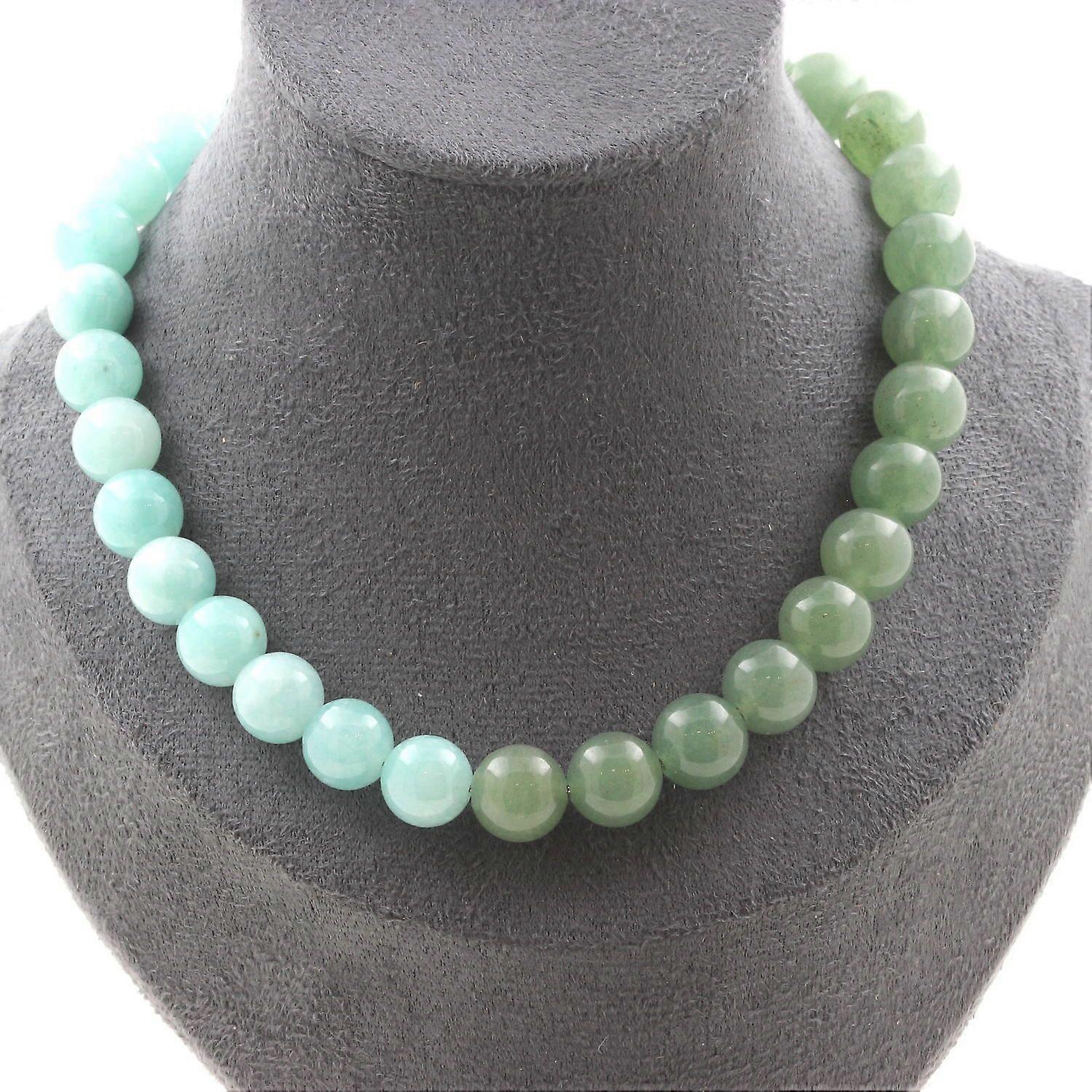 Angelite pearl necklace 10 mm + Aventurine 10 mm Stainless steel chain