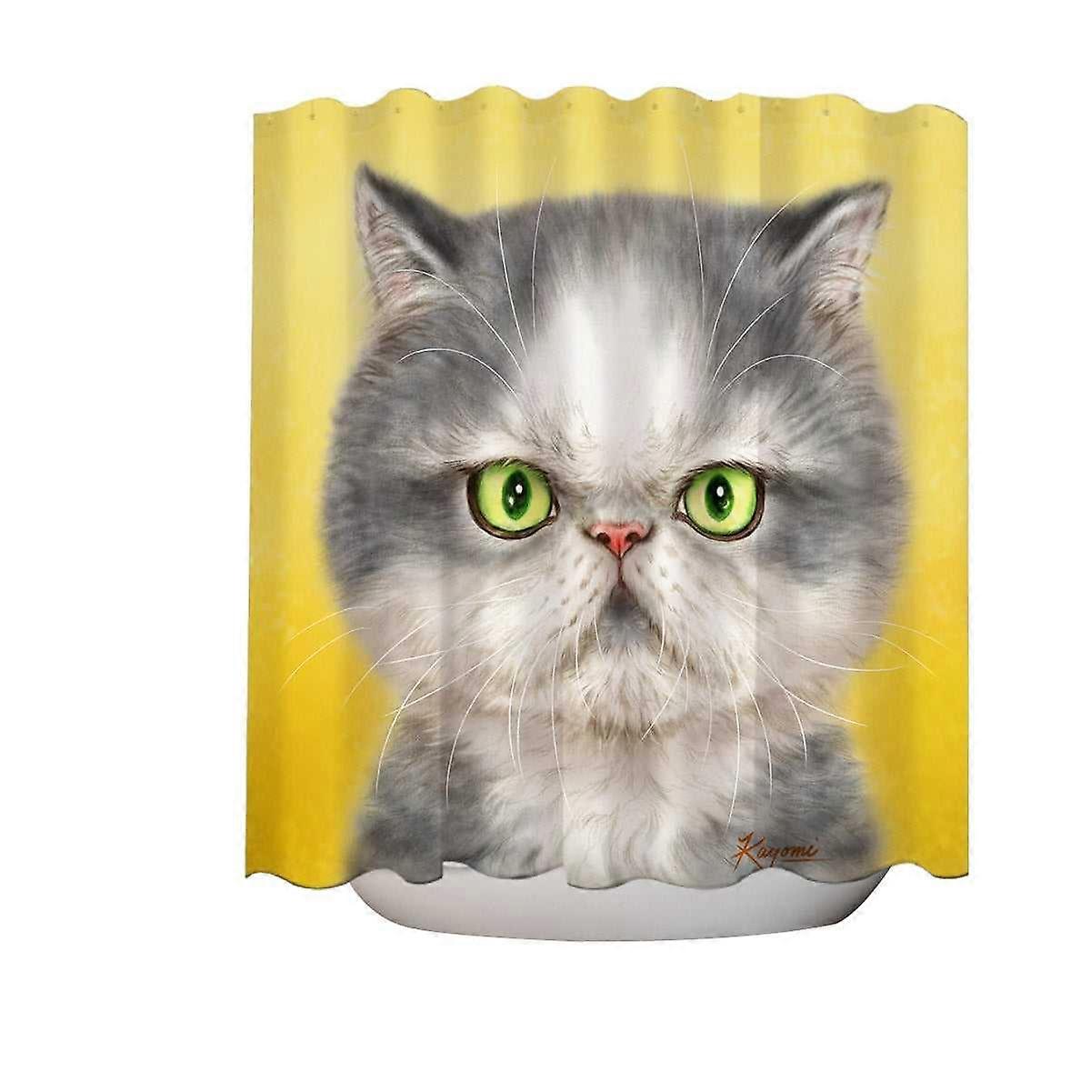 Angry Grey Kitten Cats Art Drawings Shower Curtain