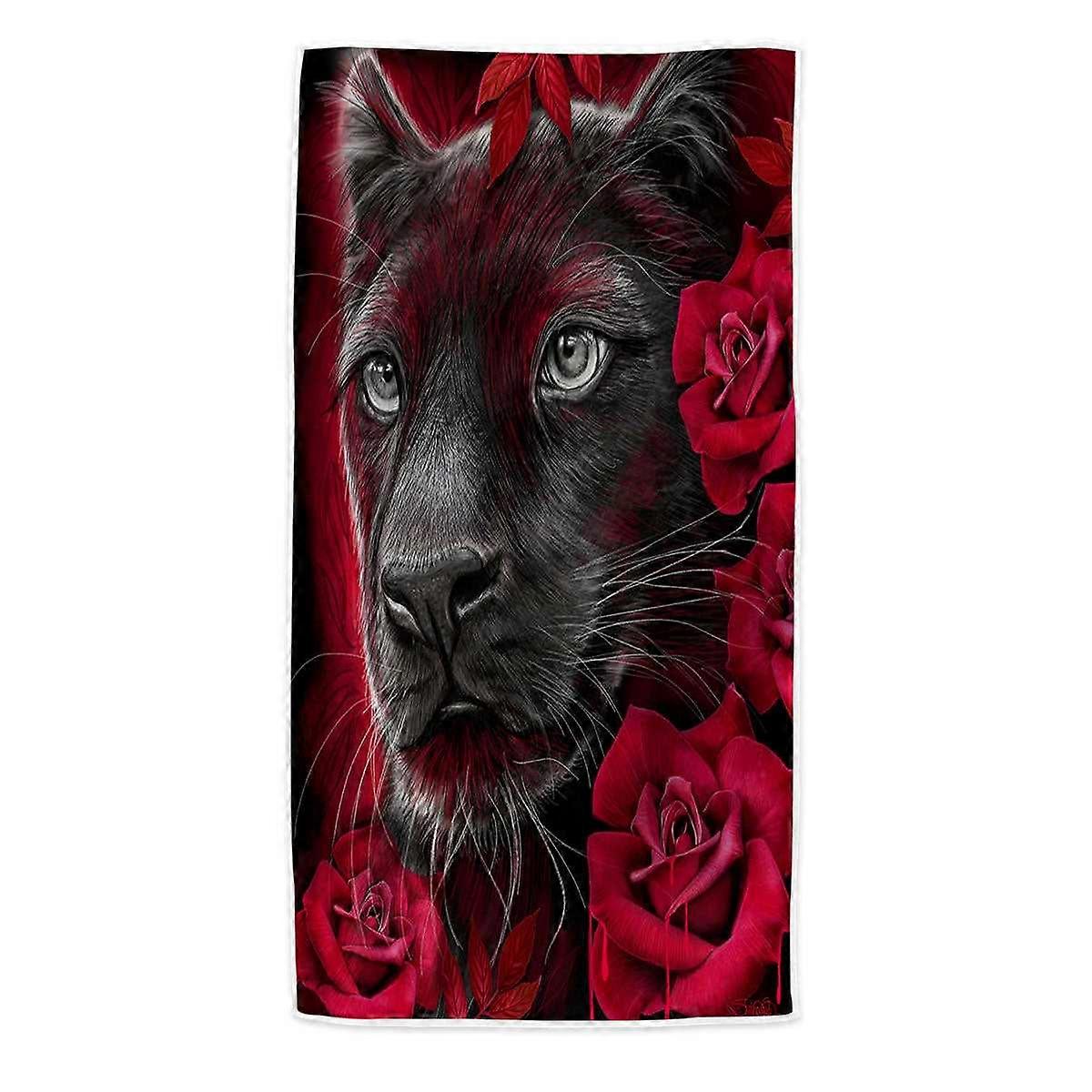 Animal Art Scarlet Rose Panther Microfiber Beach Towel