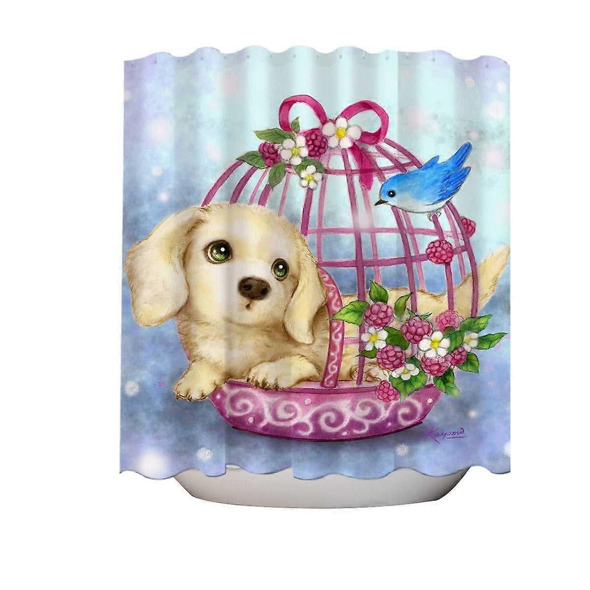 Animal Dogs Art Cute Dachshund in Bird Cage Shower Curtain