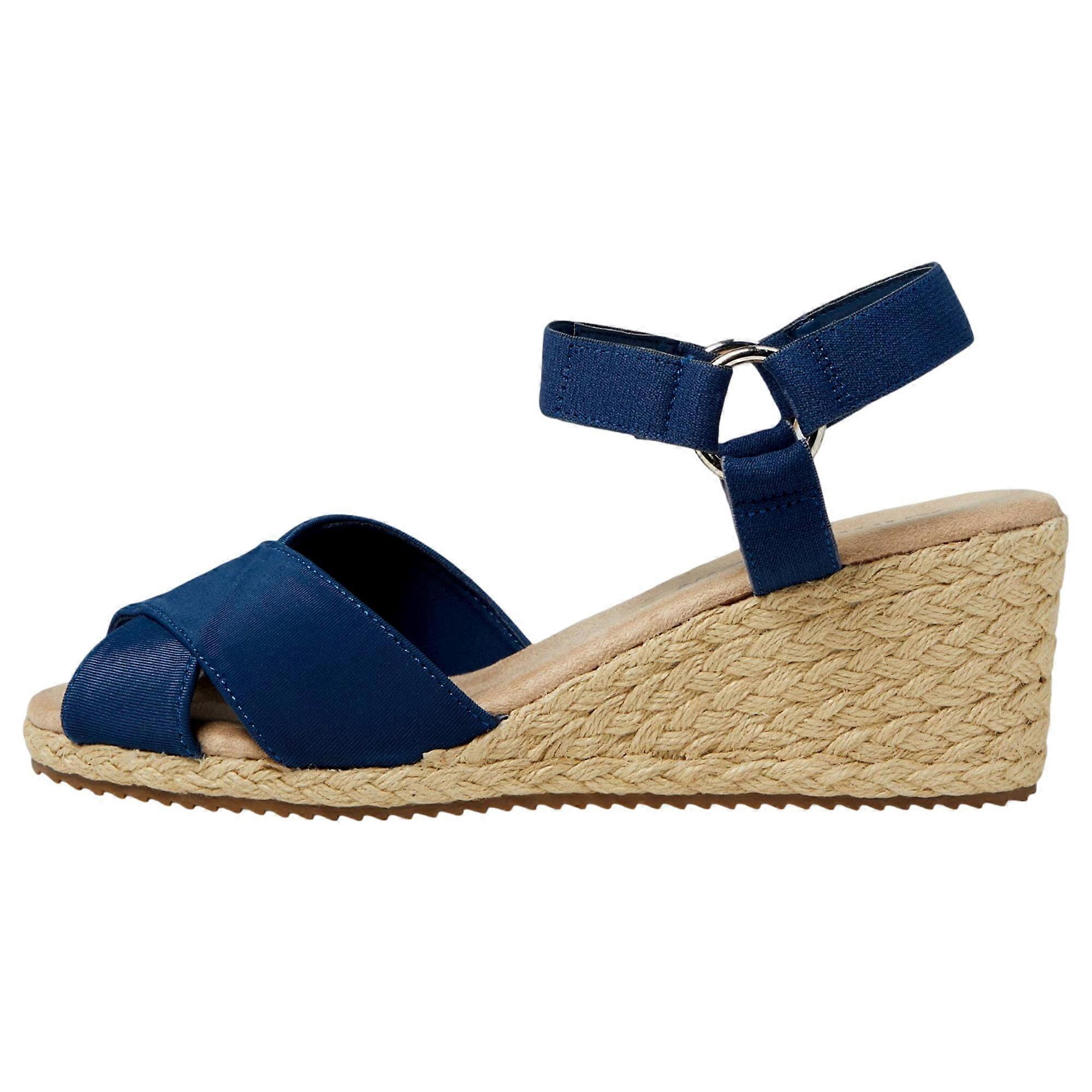 Anne Klein Esther Wedge Sandals Navy Stretch ESTH01F9-410 Women's