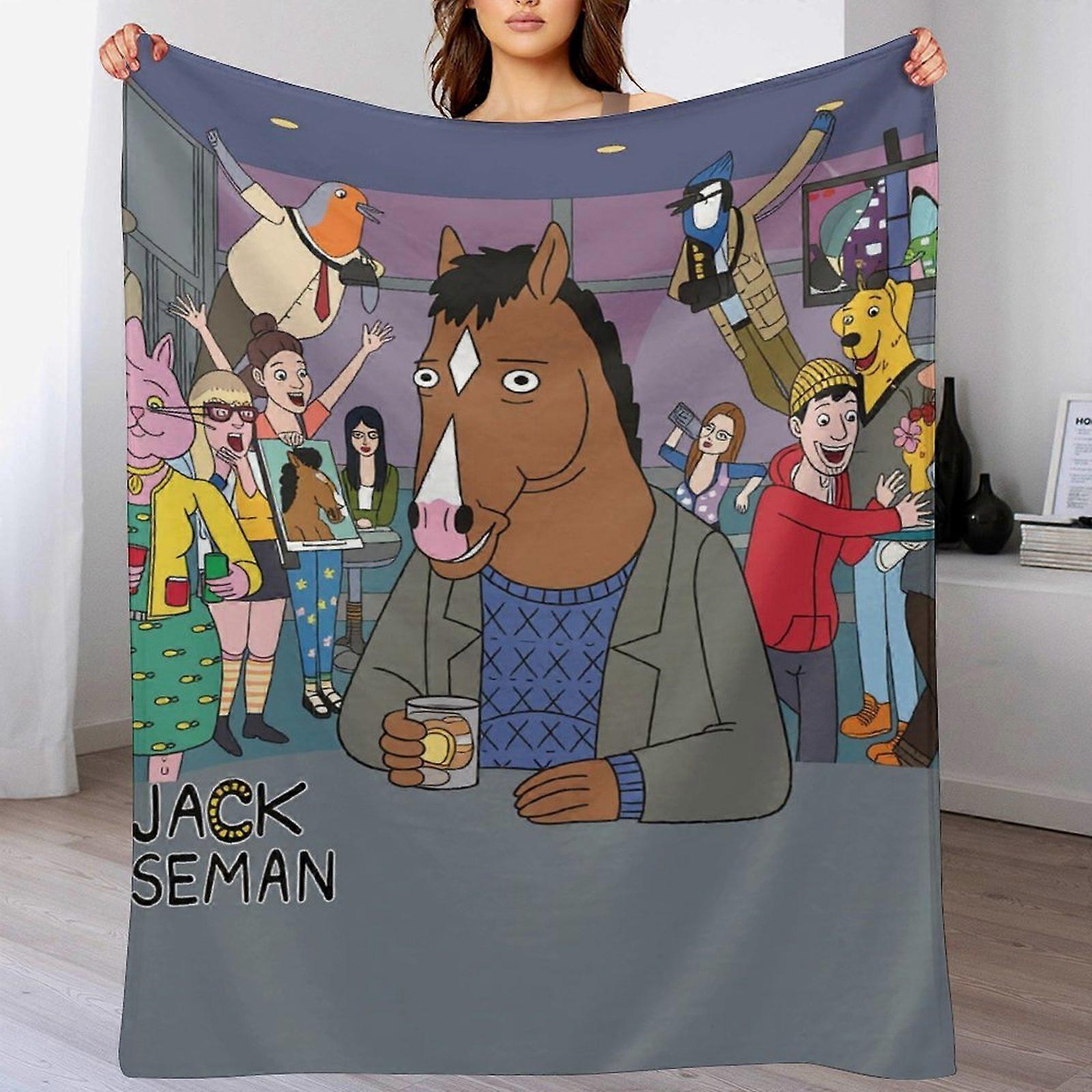 Anthropomorphic Horse Cartoon Graphic Fleece Blanket, Soft Cozy Throw for Sofa Bedroom Lounge, Adult Unisex