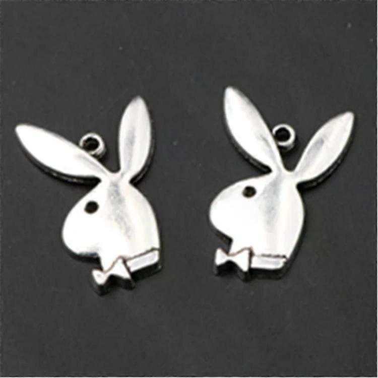 Antique Silver Rabbit Gentleman Charm Pendants-100PCS DIY Jewelry