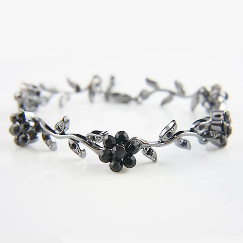 Antique Style Filigree Black Flowers Bangle Bracelet With Swarovski Crystals