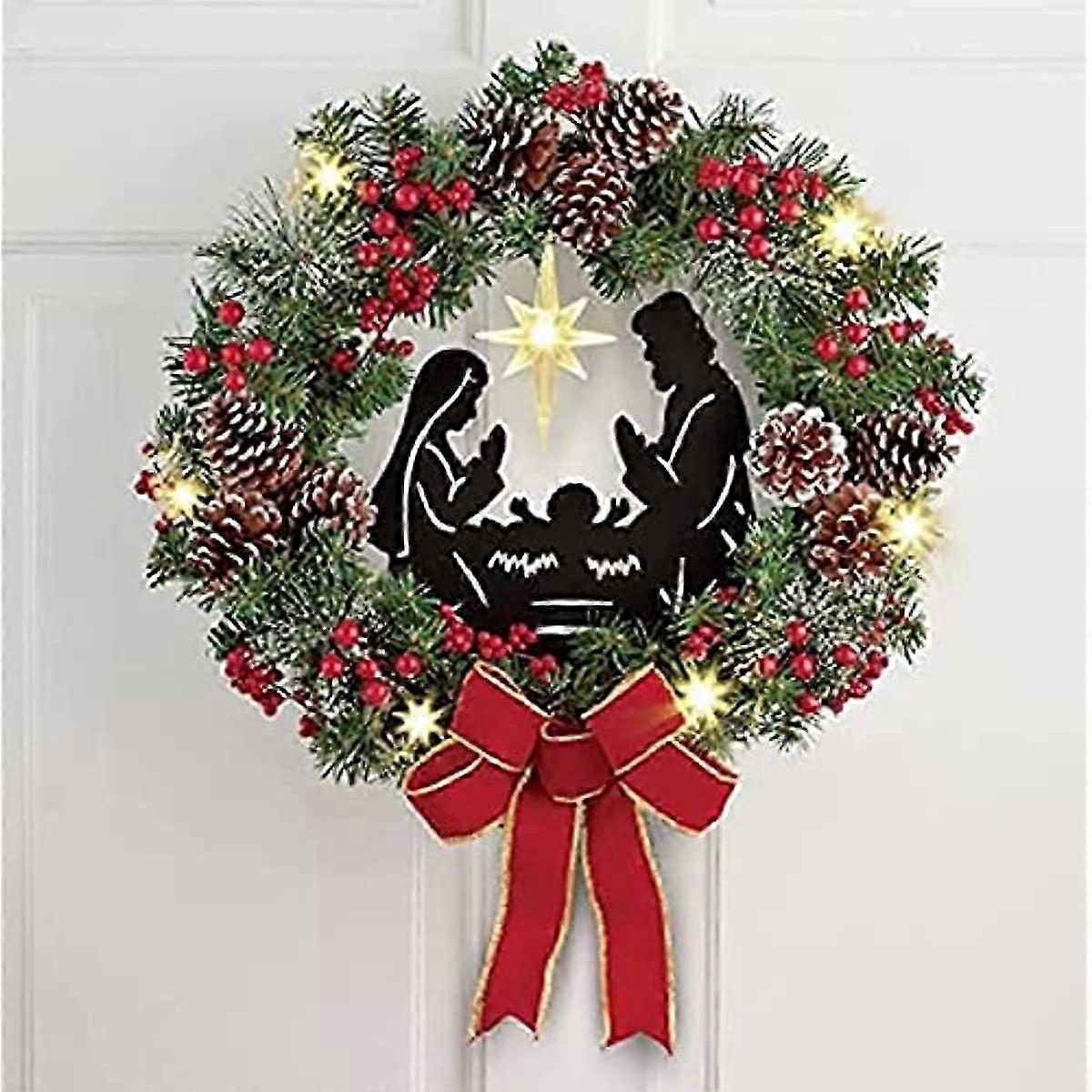 AOOPOO Lighted Nativity Scene Christmas Wreath - Christmas Wreath with LED Light Christmas Garland Christmas Wreath Front Door Wall Christmas Tree Dec