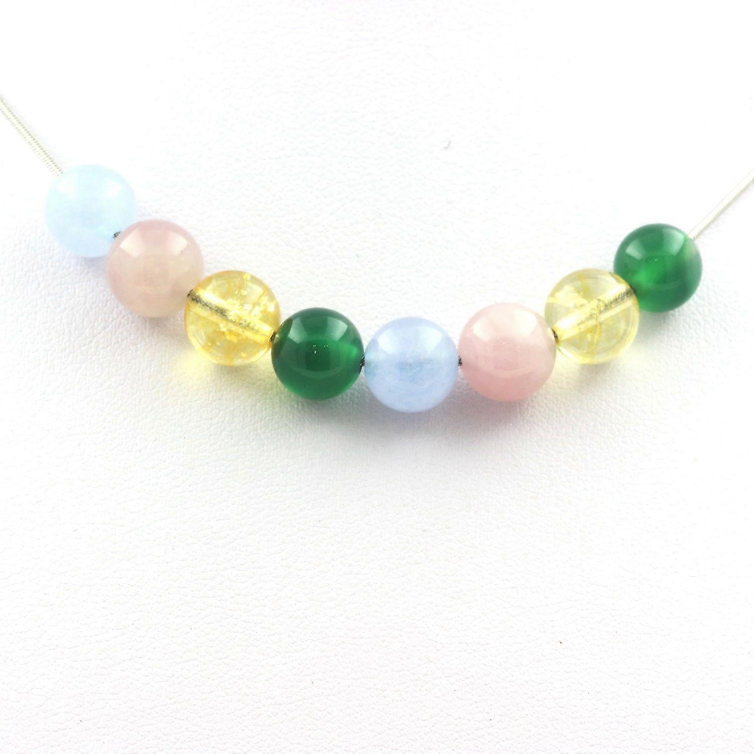 Aquamarine pearl necklace + Pink quartz + Green agate + Citrine 8 mm