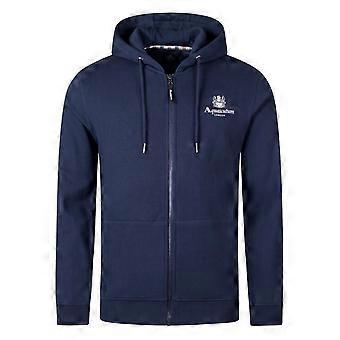 Aquascutum Active Small Logo Full-Zip Navy Blue Hoodie