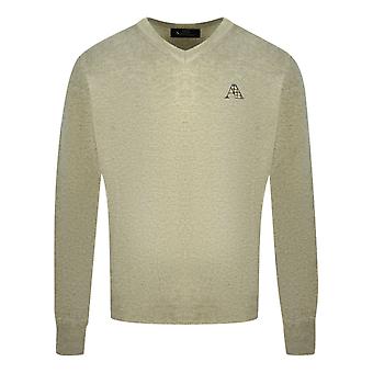 Aquascutum Check A Logo Beige V-Neck Jumper
