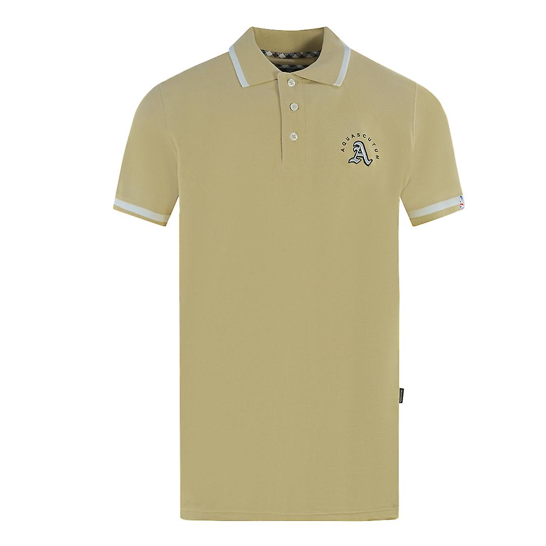 Aquascutum Embossed A Tipped Beige Polo Shirt
