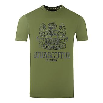 Aquascutum Large Bold London Aldis Brand Logo Army Green T-Shirt