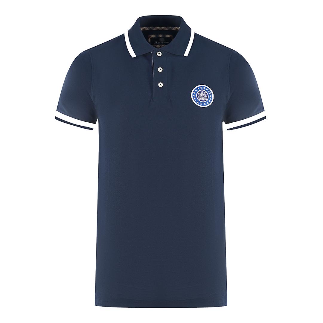 Aquascutum London Embroidered Badge Navy Blue Polo Shirt