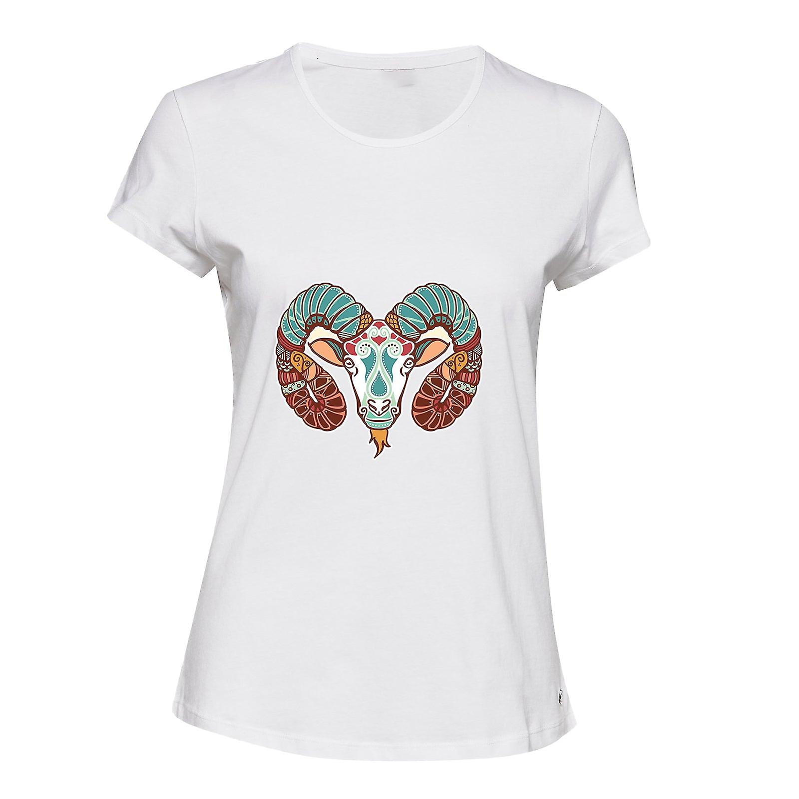 Aries Goat Sheep Head Zodiac Horoscope Symbol White Ladies Women T Shirt Tee Top