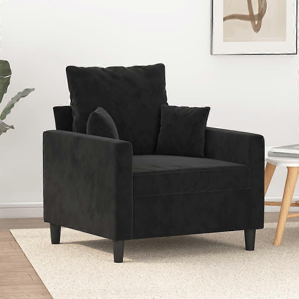 Dieser Sessel bietet einen ausgezeichneten Platz zum Plaudern, Lesen, Fernsehen oder einfach nur zum Entspannen. Er wird ein echter Blickfang in deinem Zuhause sein. Weicher Samt: Samt ist ein weicher, luxuriöser Stoff, der sich durch seinen dichten Flor aus gleichmäßig geschnittenen Fasern auszeichnet, die einen glatten Flor haben. Samt fühlt sich unverwechselbar weich an und ist angenehm zu berühren.Robustes und stabiles Gestell: Das Metallgestell verleiht dem Sessel Robustheit und Stabilität.Bequemes Sitzerlebnis: Mit einer dick gepolsterten Sitzfläche, Armlehnen und einem Rückenkissen versehen, ist der Sessel sehr bequem.Auffälliges Design: Mit seinem schlichten und dennoch modernen Design ist dieses Sofa ein echter Hingucker in deinem Zimmer. Farbe: SchwarzMaterial: Samt (100 % Polyester), Metall, TextileneFüllung: SchaumstoffGesamtabmessungen: 78 x 77 x 80 cm (B x T x H)Sitzbreite: 60 cmSitztiefe: 66 cmSitzhöhe vom Boden: 41 cmArmlehnenhöhe vom Boden: 56,5 cmMax. Tragfähigkeit: 110 kgZusammenbau erforderlich: Ja