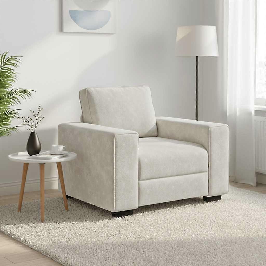 Farbe: CremePolstermaterial: Samt (100% Polyester)Füllmaterial des Sitzkissen: SchaumstoffFüllmaterial des Rückenkissens: PP-FaserMaterial des Rahmens: Sperrholz, Stahl, KunststoffGesamtabmessungen: 100 x 77 x 82 cm (B x T x H)Sitzbreite: 60 cmSitztiefe: 50 cmSitzhöhe vom Boden: 44 cmArmlehnenhöhe vom Boden: 57 cmHöhe der Rückenlehne: 44 cmMax. Belastbarkeit: 110 kgZusammenbau erforderlich: Ja