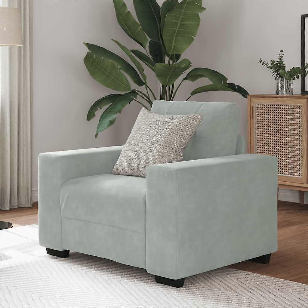 Erlebe außergewöhnlichen Komfort und Stil mit dem Sofasessel, perfekt zum Plaudern, Lesen, Fernsehen oder einfach nur zum Entspannen. Weiches und komfortables Material: Der Samtstoff hat eine weiche und sanfte Oberfläche, die sich angenehm auf der Haut anfühlt und höchsten Komfort bietet.Komfortables Sitzerlebnis: Dieses Relaxsofa ist mit dick gepolsterten Schaumstoffsitzen und fasergefüllten Kissen ausgestattet, die für eine hervorragende Unterstützung sorgen und den idealen Platz zum Entspannen bieten.Robustes und stabiles Gestell: Das Gestell aus Sperrholz und Metall und die stützenden Beine des Sofas sorgen für Stabilität, sodass du ein bequemes Sitzerlebnis genießen kannst, ohne dich um die Stabilität sorgen zu müssen.Vielseitig einsetzbar: Ob im Wohnzimmer, im Schlafzimmer, im Arbeitszimmer oder im Empfangsbereich, das moderne Sofa fügt sich mühelos in jede Umgebung ein. Von großzügigen Räumen bis hin zu intimen Ecken, sein flexibles Design sorgt dafür, dass es jeden Raum ohne Einschränkungen aufwertet.Auffälliges Design: Der Sessel besticht durch die Kombination von Samt und Sperrholz-Armlehnen, die die Verschmelzung der verschiedenen Stilelemente unterstreicht und sich sowohl an moderne als auch an traditionelle Innenräume anpasst.