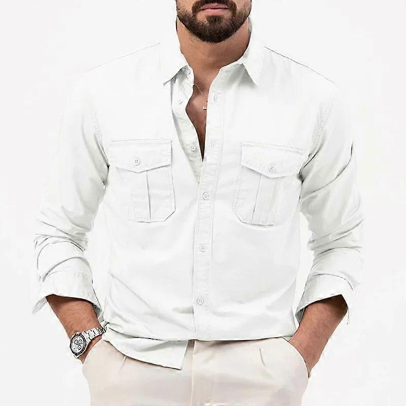 Army Green Men's Tactical Cargo Shirt Long Sleeve With Chest Pockets 2024