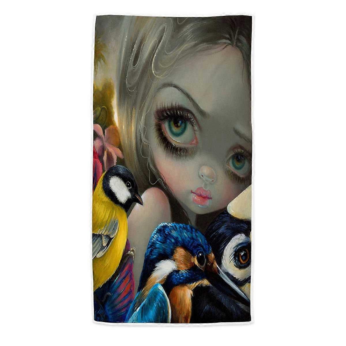 Art Painted Birdsong Beautiful Maiden and Birds Microfiber Beach Towel