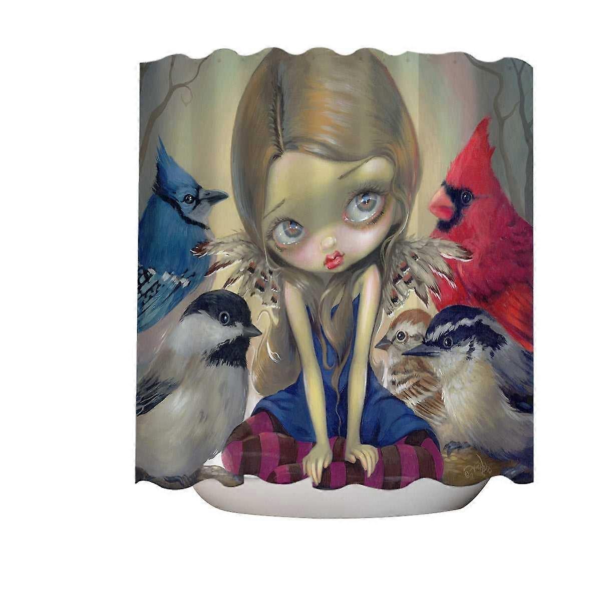 Art Painting Backyard Birds with a Fairy Friend Shower Curtain