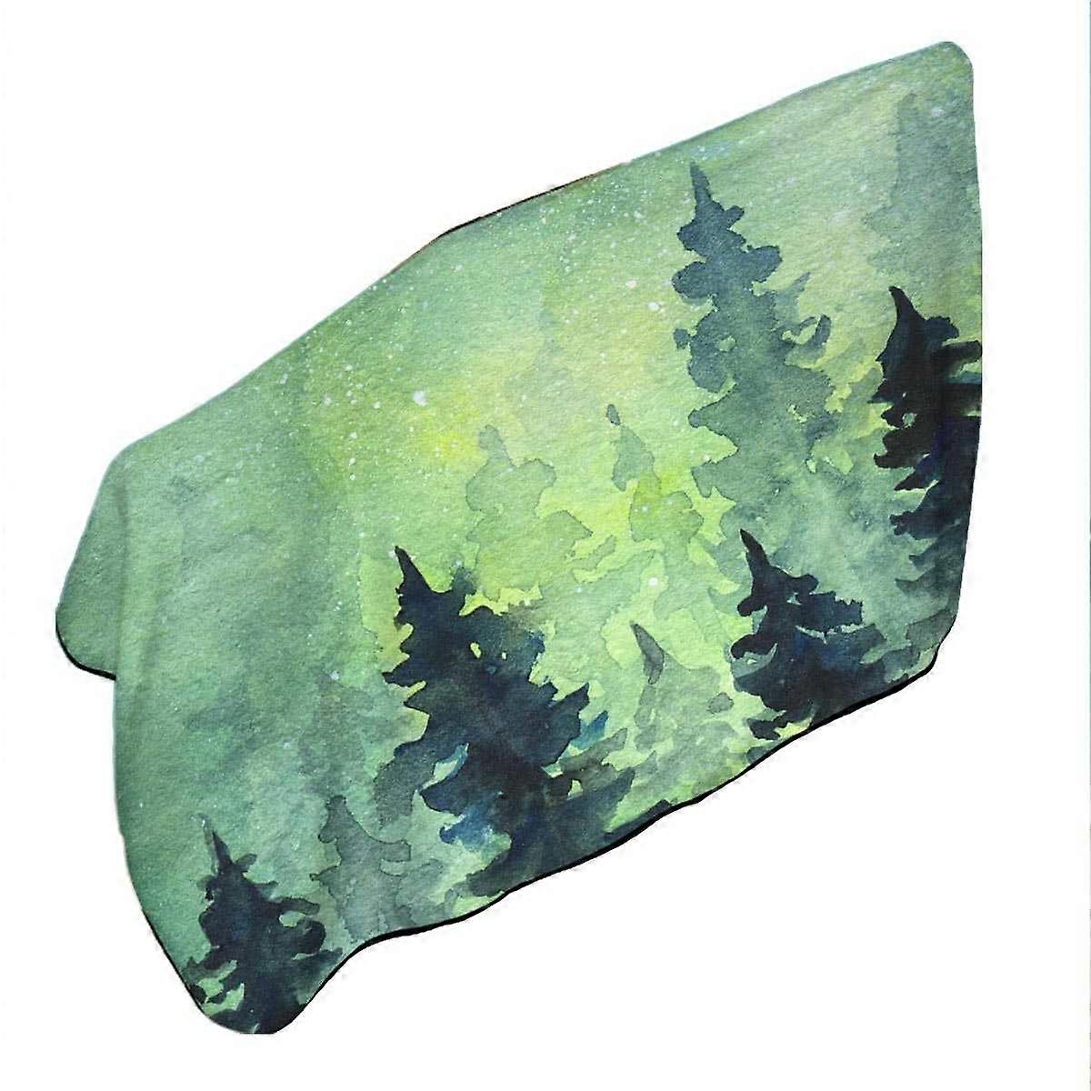 Art Painting of Green Night Pine Forest Microfiber Beach Towel