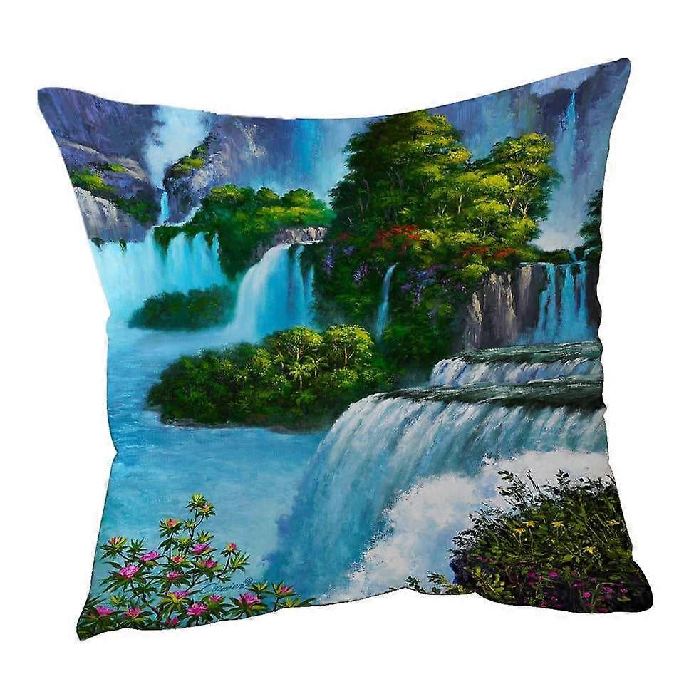 Art Painting of Nature Paradise Falls Cushion Cover